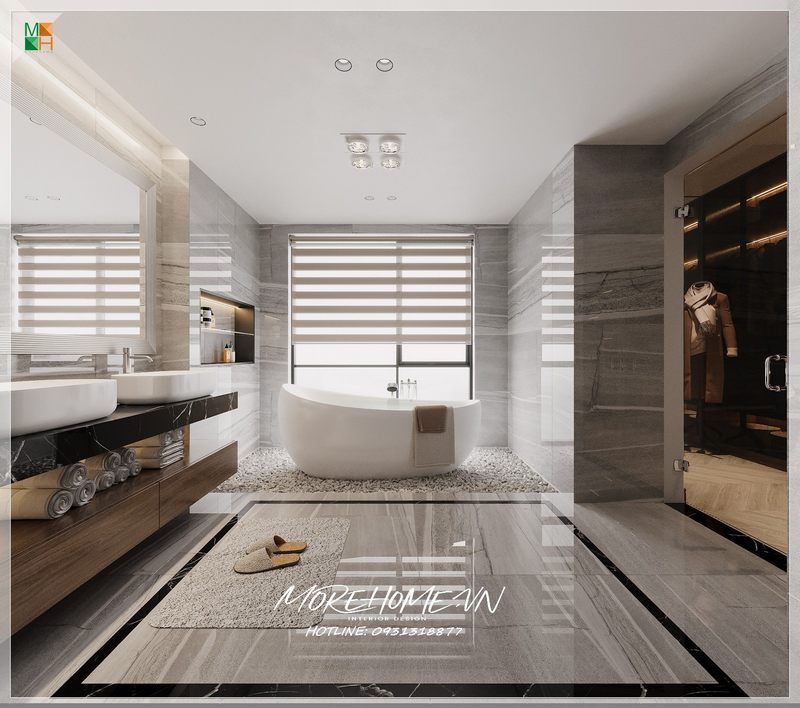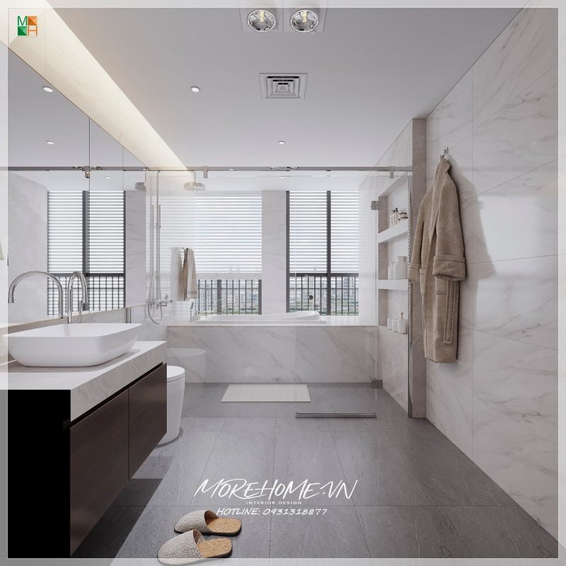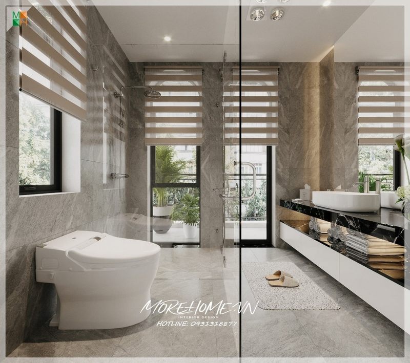 Mẫu thiết kế phòng tắm cho chung cư, nhà phố, biệt thự được bố trí rất nhiều cửa sổ đảm bảo không gian phòng thông thoáng tuyệt đối