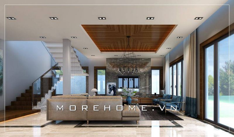 Mẫu thiết kế phòng khách của biệt thự đầy sang trọng và đẳng cấp, được trang bị nội thất cao cấp và được sắp xếp hài hòa trong tổng thể của căn nhà.