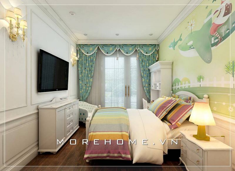 Để tạo nên một không gian thân thiện và nhẹ nhàng cho phòng ngủ của bé trai, hãy trang trí nội thất theo phong cách tân cổ điển.